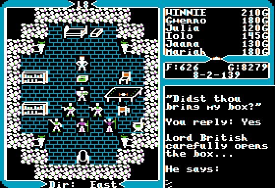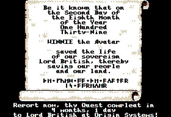 Сам же сэр Кеннет охотно учит игре на клавесине, причём учит игрока, а не персонажа. То есть, вам придётся действительно учиться читать ноты и играть на грёбаном клавесине (!!!). В Книге Знаний, входящей в комплект с игрой, содержатся ноты для композиции "Камни", любимого произведения Лорда Бритиша, написанного Иоло и Гвенно (и снова возникает вопрос: почему сами Иоло и Гвенно меня не научили?). Говорят, что если играть её на очень хорошем музыкальном инструменте, могут происходить чудеса. Но это должен быть "инструмент, достойный королей". Звучит эта тема вот так.