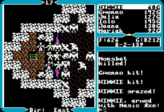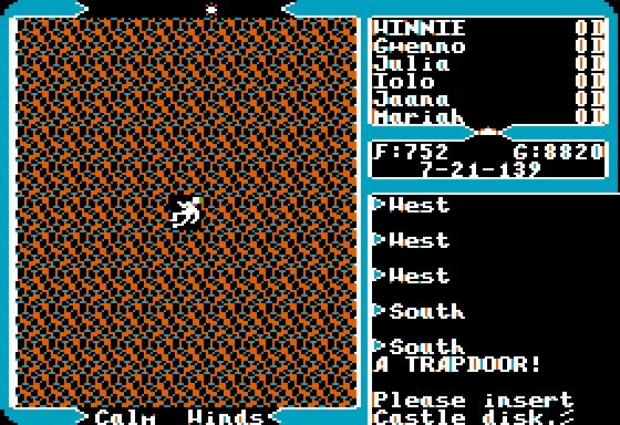Добро пожаловать на старую-добрую платформу Apple II! На этот раз из неё выжали всё, что можно. Для воспроизведения музыки игра использует даже не одну, а две звуковые карты Mockingboard - в результате получается 8-голосый звук. Оперативной памяти игра при этом жрёт 128 Кб (Компьютеры Apple IIe имели 64 Кб, но пользователь мог добавить ещё 64, установив дополнительную карту), да ещё при этом "тормозит".