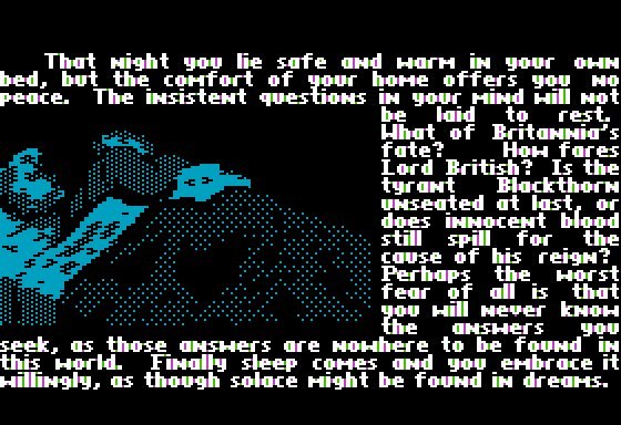 Уложив Шамино в постель и оказав необходимую помощь, Иоло рассказал Аватару о последних событиях в истории Британии, исчезновении короля, Блэкторне и Теневых Владыках. Оставалась надежда на то, что король жив, и его вызволение должно было в перспективе стать их главной задачей.