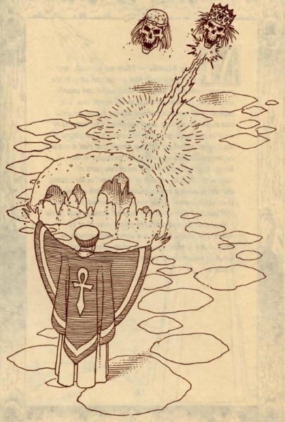 Побеседовав с этими уважаемыми людьми, я обратился к Анху Духовности. Он сообщил, что хранит секрет руны и сообщит его лишь тому, кто знает мантру. О том, как её можно узнать, нам рассказала голодная нищенка, бродившая вокруг города в поисках пищи. Когда мы накормили её, она посоветовала нам спросить о руне у её подруги Амбулы. Она тоже была нищенкой, обитавшей в северной части города. Получив подаяние, Амбула сообщила, что мантру знает ребёнок по имени Баррен. Разыскав и его, мы наконец узнали мантру: "Ом".