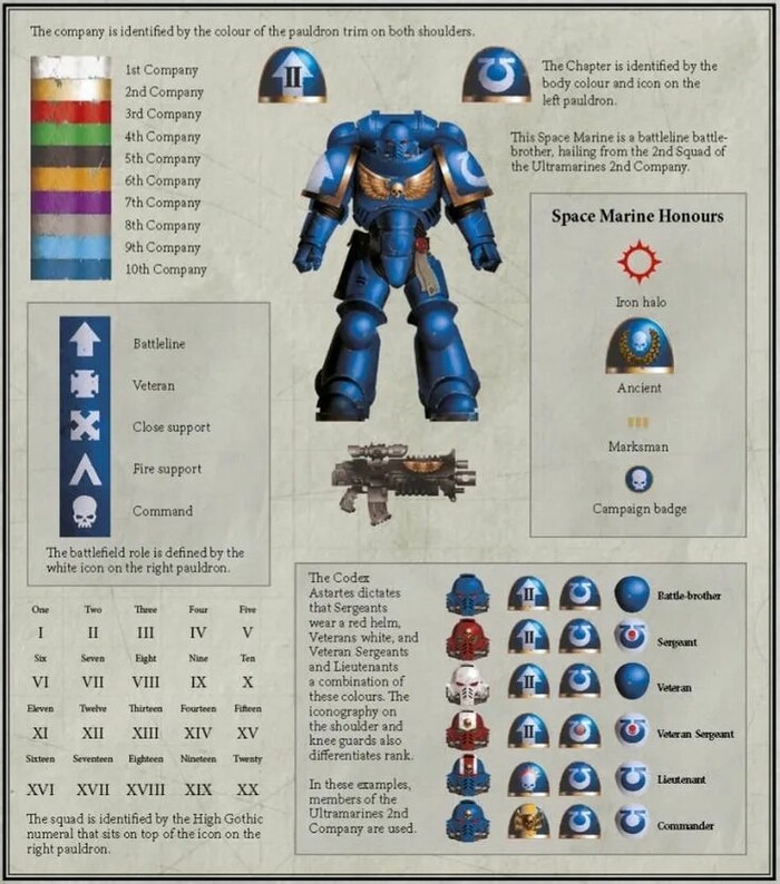 Как я понял, весь лор связанный с внутренней структурой ультрамаринов описывается в кодексе. Я пока не знаю где такую книжецу сейчас можно достать, по этому я ориентировался на ответы в интернетах. В основном на Вики и на этот пост - Геральдика ультрамаринов во вселенной Warhammer 40k