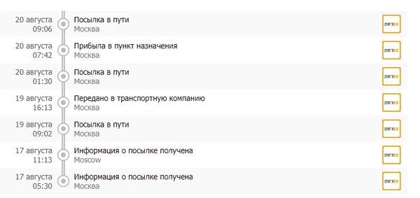 Хммм, странный какой-то трекномер. Ну ладно, "гдепосылка" видит и то хорошо. Мониторю периодически, посылочка медленно, но верно двигается. Смотрю, посылку передали в сдек. Ну эта фирма у нас в городе есть. И вот сегодня случилось чудо. Звонит мне курьер и говорит "Щас посылочку привезу". Мне уже любопытно, что вы там такое мне привезете.