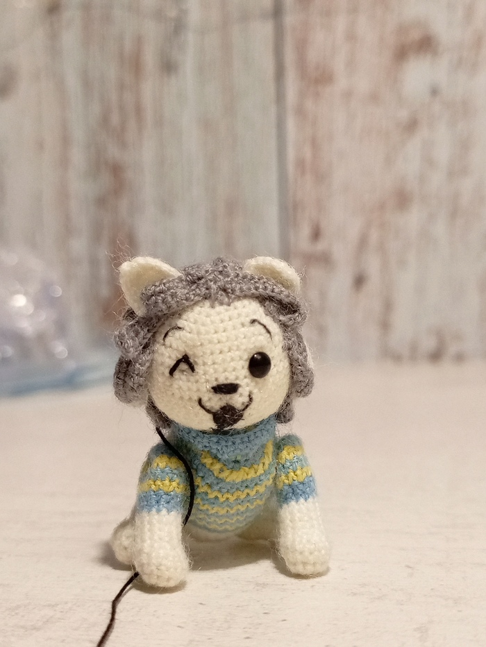 Осталось дело за малым - пришить ему/ей две пары ушей, пришить волосы и сделать хвост. Скоро покажу итоговый результат.