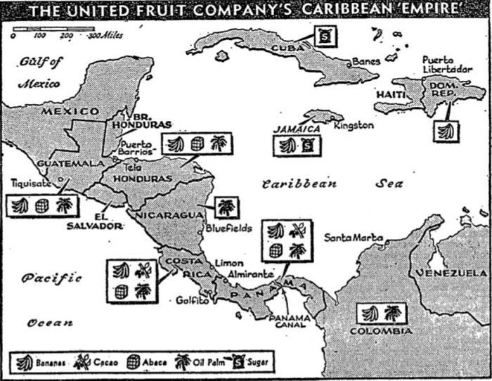 Бананы, Какао бобы и кофе это конечно, вкусно. Но как основное блюдо (даже с майонезом) - не потянет, да и витаминов там кот наплакал. Таким образом, местные безземельные крестьяне попали под прямую зависимость от завоза продуктов питания (бобы, рис, кукуруза) извне и постоянно голодали. За импорт продуктов, кстати, отвечала та же Юнайтед Фрут.