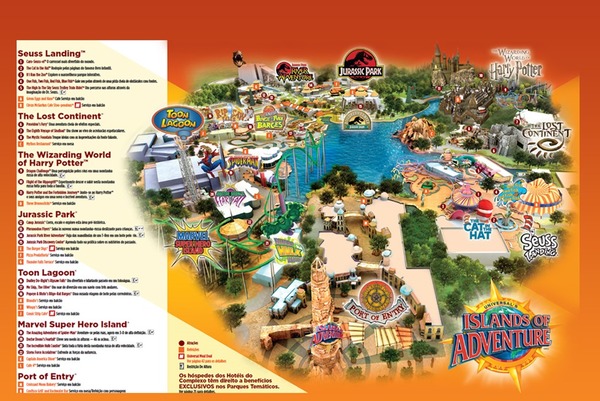 Цена за вход 100$/день в один парк и если в два сразу, то 150$. Но, можно покупать билеты на 2-3 дня и так будет дешевле. То есть, как Вы поняли, парк делится на две зоны: Universal Studio и Island of Adventure. Я же был только во втором, так как времени на два парка не было.