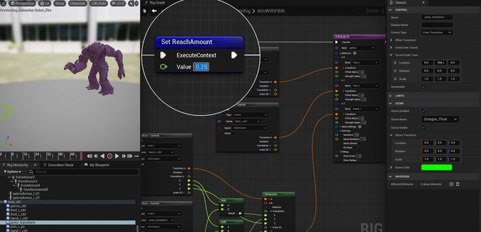 Каждый кадр срабатывали три LineTrace, которые определяли координату под каждой ногой и туловищем персонажа, чтобы красиво сгибать ноги в зависимости от рельефа поверхности, на которой стоит главная героиня (Inverse Kinematics). В связи с этим, следующий важный совет: