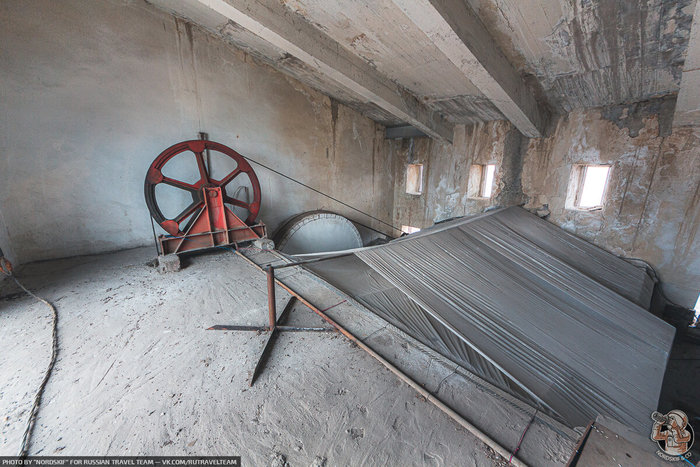 Сейчас, я предлагаю вам спустится туда, куда обычно не пускают в работающих канатных дорогах — машинный зал. Сейчас, тут относительно безопасно: механизмы замерли, а здание обесточено.