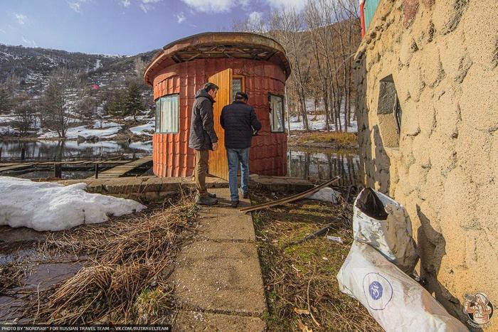 Армянин лет шестидесяти, с которым мы разговорились, сам держал летнее кафе, закрытое в не сезон. Тем не менее он не только угостил нашу компанию кофе и подсказал местечко где можно вкусно поесть, но и провел небольшую экскурсию по огромному заброшенному советскому Дворцу Спорта где ему довелось некоторое время поработать в молодости.