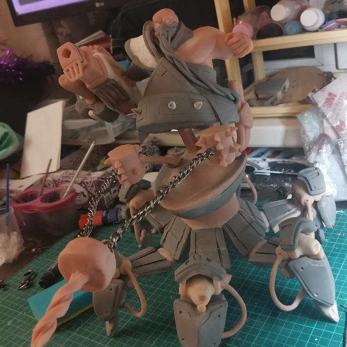 Как вы уже поняли, мне всё-таки пришлось делать ноги целиком и полностью вручную. И, Боже, лепить механизмы - это ад. Скульптинг "живой" части Ургота проблем не вызвал.