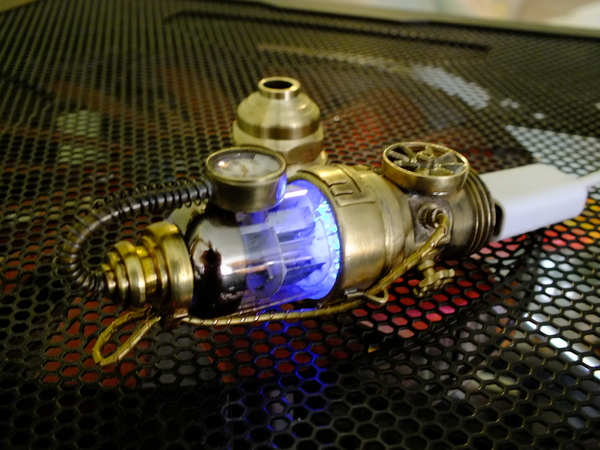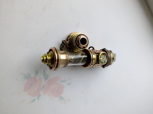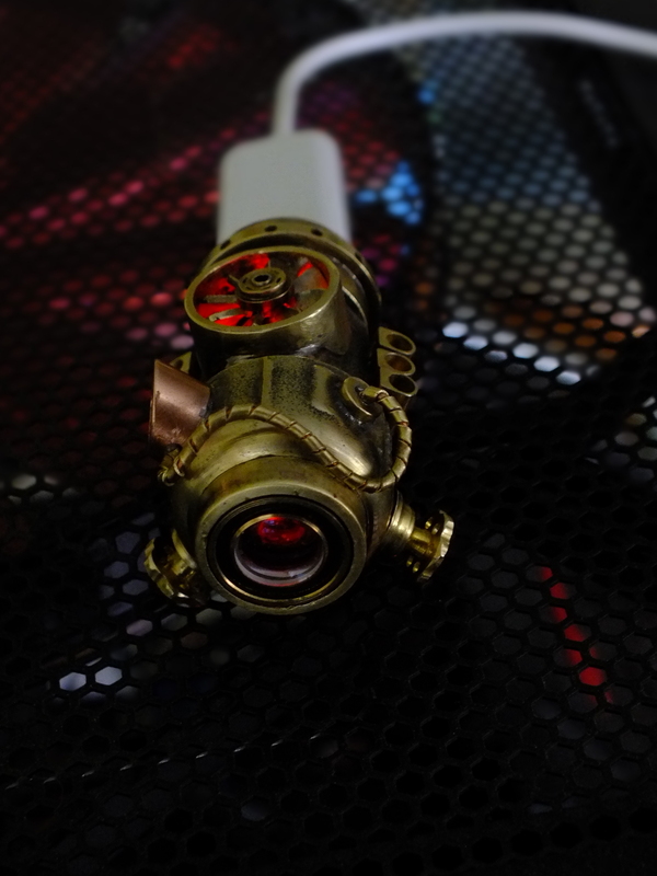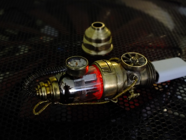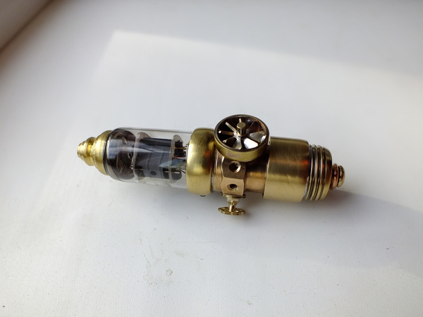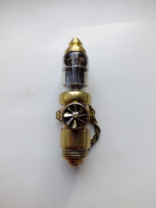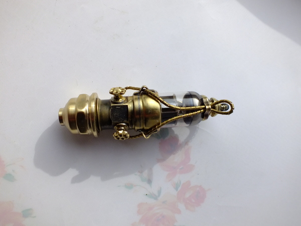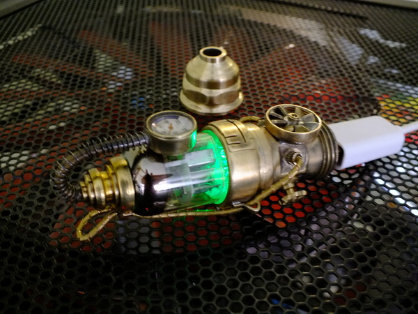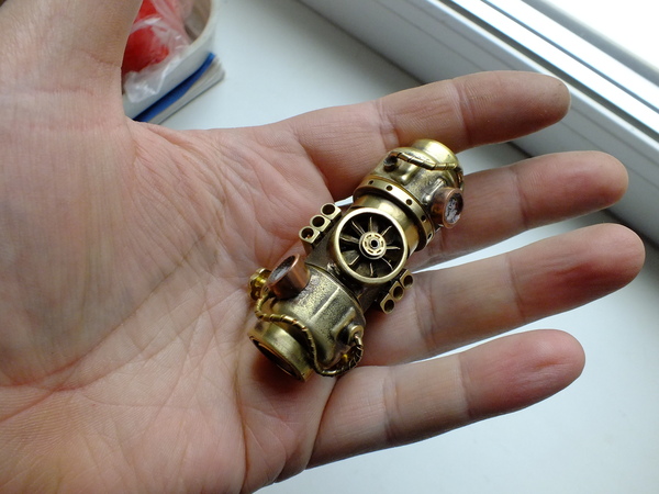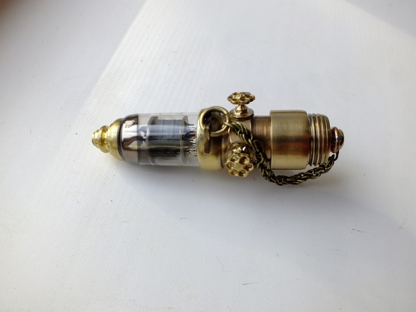 Сделал из латуни меди и бронзы , так же поучаствовала оптическая линза , многоцветная подсветка, длина 7 см )