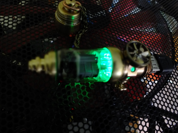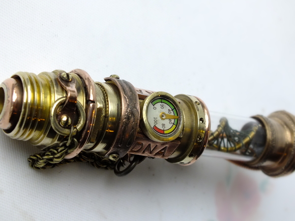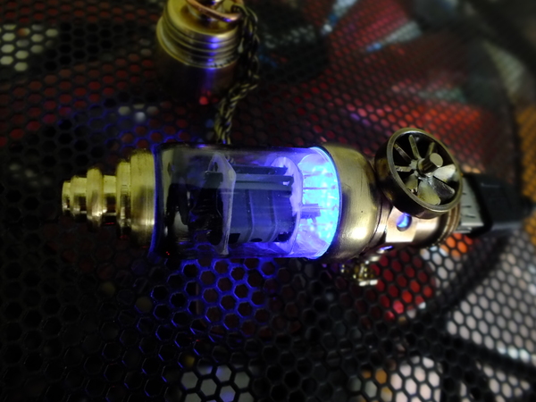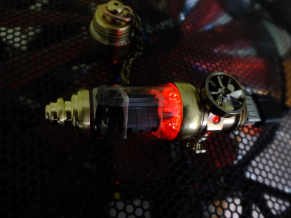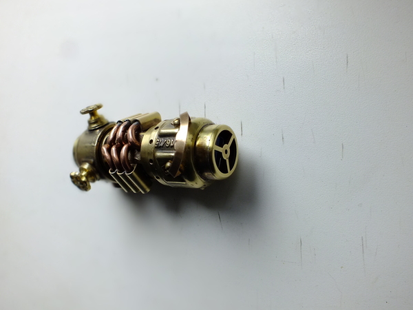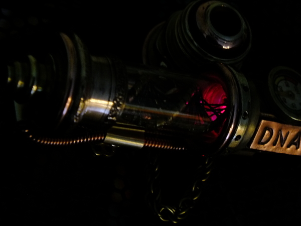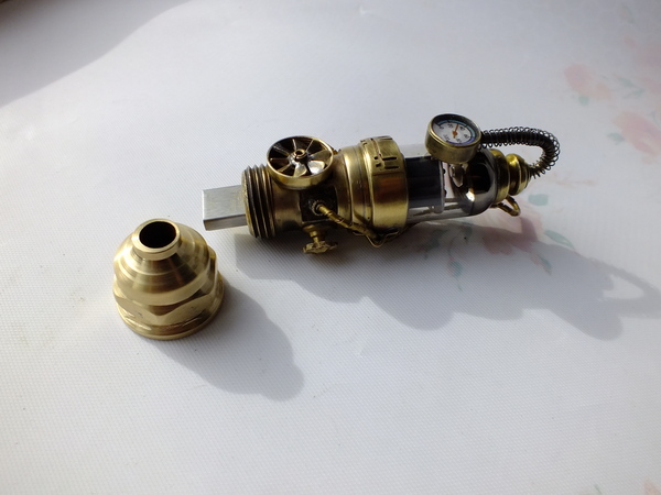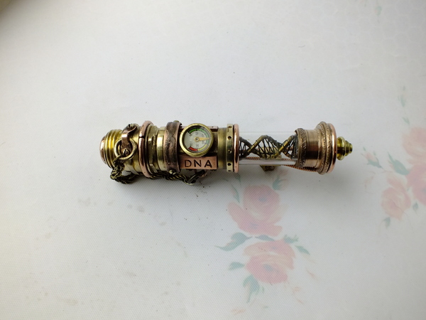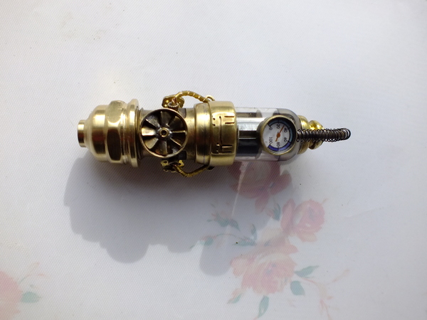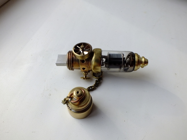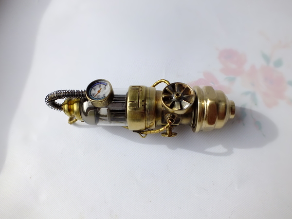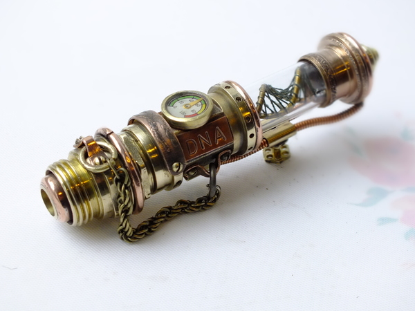 Сделал из латуни меди и бронзы , так же поучаствовала оптическая линза , многоцветная подсветка, длина 7 см )