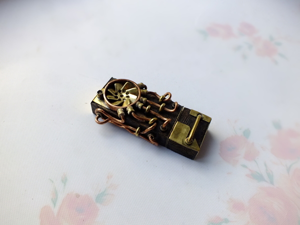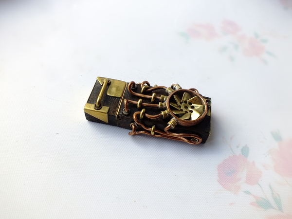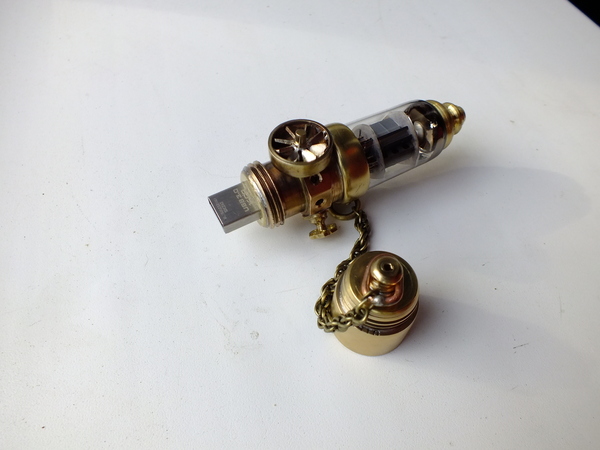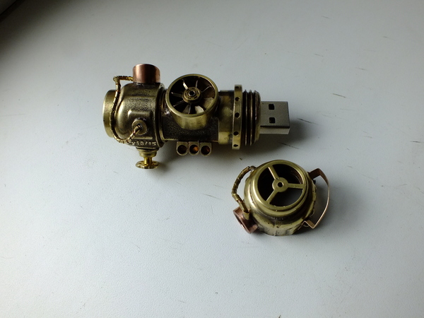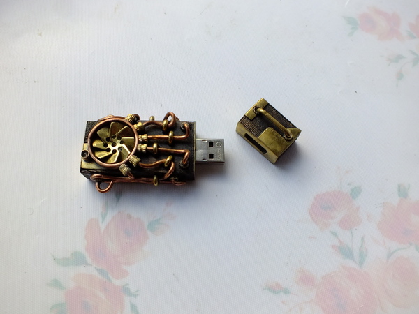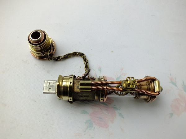 Сделана из латуни , меди ,бронзы, радиолампы СССР, обьем 16 гб, мигает белым на видео ниже видно