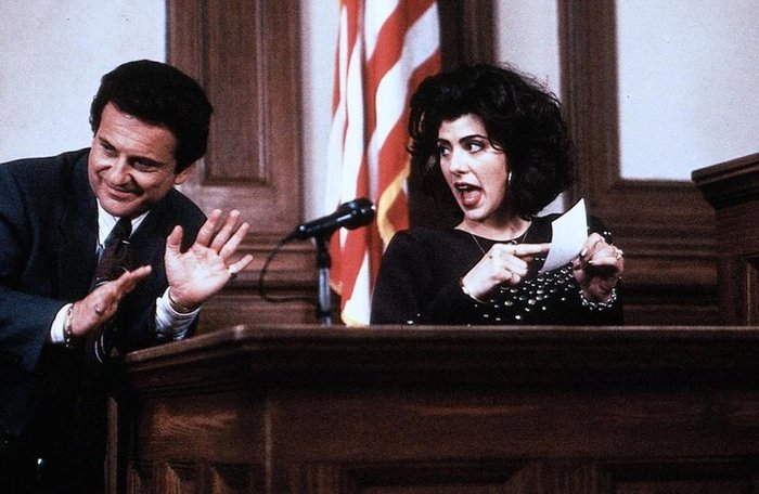 Винни Гамбини мечтал стать адвокатом еще когда сидел за решеткой. Поэтому когда кузен Билл попросил спасти его от тюрьмы, он понял, что «звездный» час Винсента Гамбини настал. А грозит бесшабашному Биллу и его дружку Стэну немало — их ошибочно обвинили в убийстве продавца в городке, где они были проездом. Думая, что их обвиняют в мелкой магазинной краже, они подписали признания. У наивного грубоватого Винни, пародии на адвоката, который ни разу не был в суде, имеется, однако, секретное оружие — способность скандалить без устали часами напролет. Он и его бойкая на язык, сексапильная подружка Мона Лиза едут в маленький городок, чтобы вытащить эту парочку из беды...
