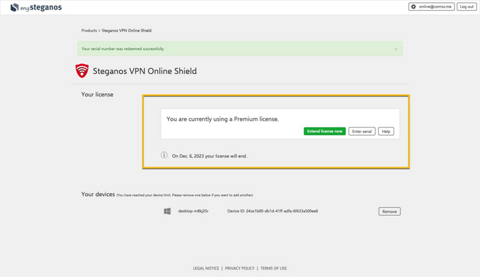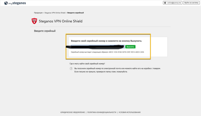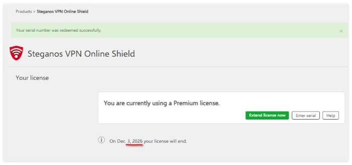 7. Готово, Steganos VPN на 1 год.