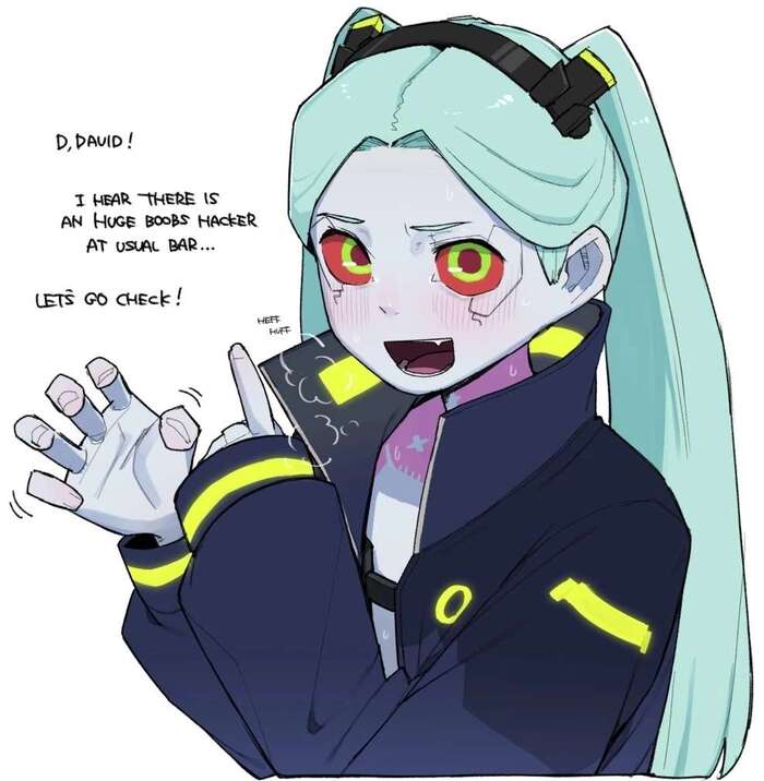 — Д-дэвид! Я слышала, что в том баре сидит хакерша с пышной грудью... Пойдём проверим! *уфф-уфф*