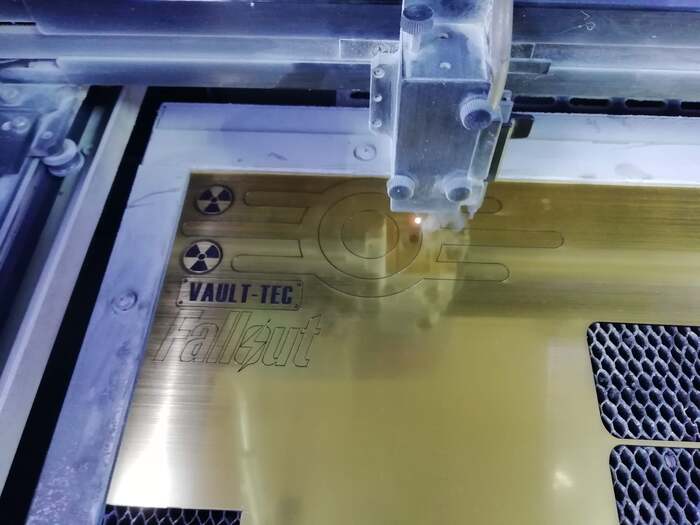 Вырезал лазером логотип Vault-tec ну и остальное.