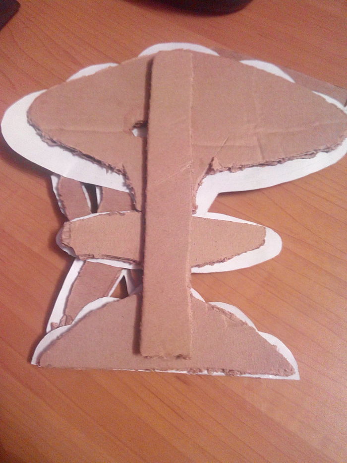 Обклеил картоном гриб с обратной стороны, и закрепил это все еще одной полоской картона дабы вся эта конструкция не выгибалась и сохраняла форму