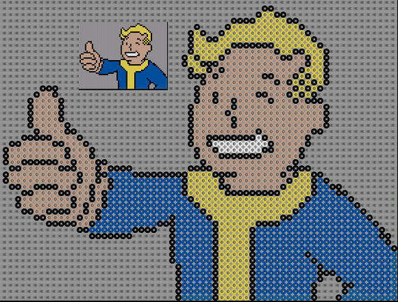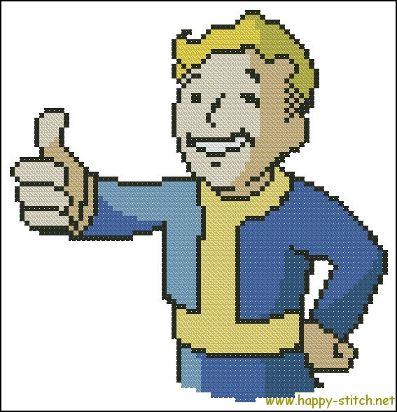 В итоге я делаю подушку, которую я для в себя в голове обозвала просто Гик. Т.к молодой человек любитель разнообразных компьютерных игр, было решено вышить на подушке что-то по этой части. Короче говоря, выбор пал на Vault Boy из Fallout.