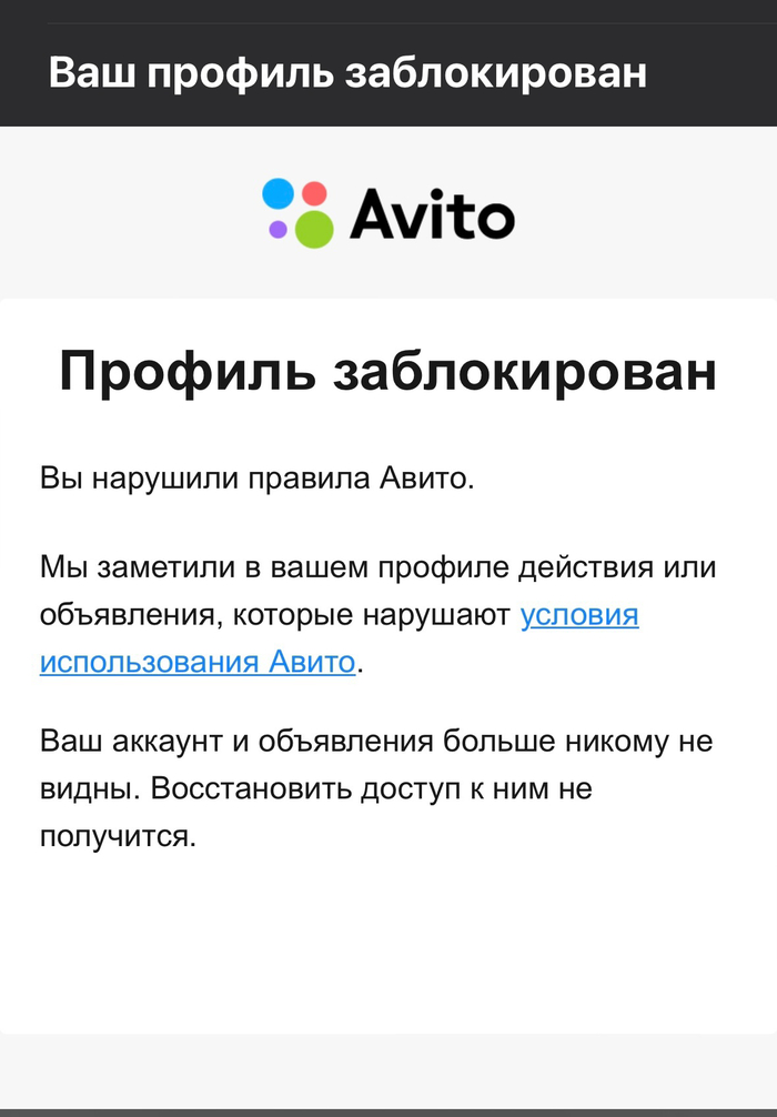 Проработало это все 2-3 месяца, после чего на мою 10 публикацию туториала вылетел вот этот экран смерти. Как оказалось сервис определил, что я извлекаю коммерческую выгоду из своих публикаций. Да, это так. Статьи которые я пишу действительно содержат ссылки на мои сервисы.