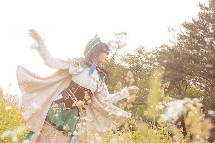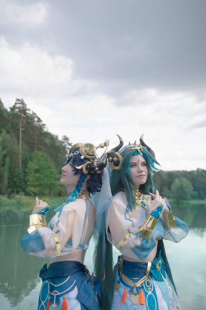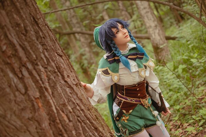 Косплей на Венти и его прошлое воплощение (игра Genshin impact)