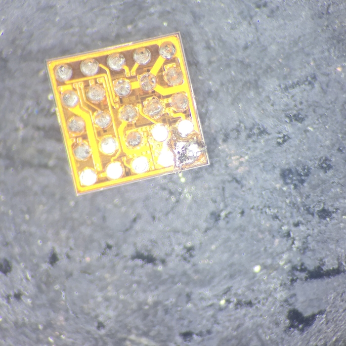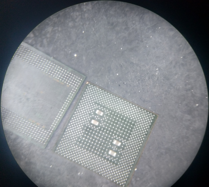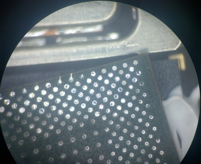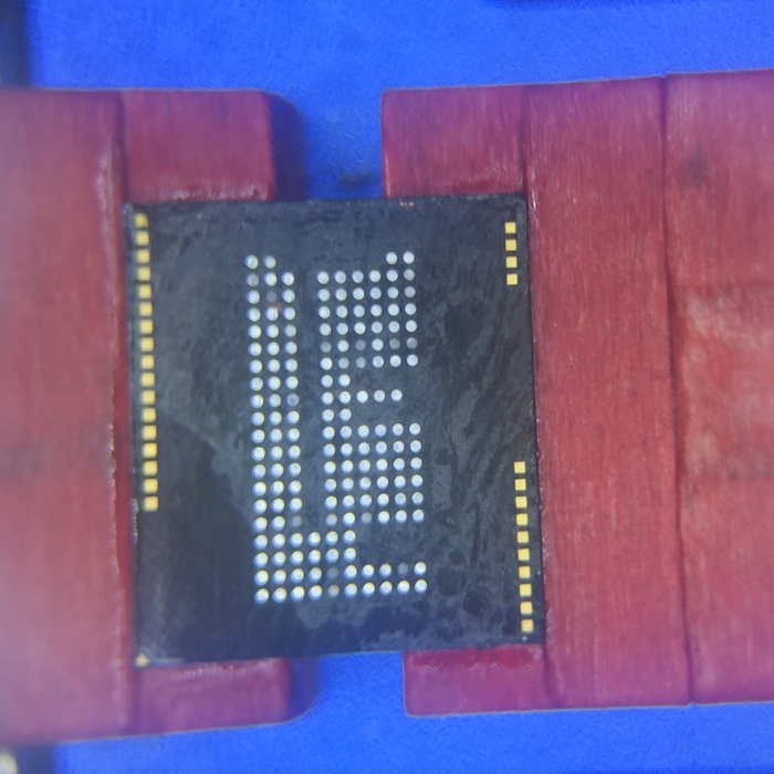 Дальше, если у вас есть программатор для работы с памятью, отчищаем снятую микросхему от припоя и накатываем через трафарет новые шарики, чтобы убедиться в ее неисправности.