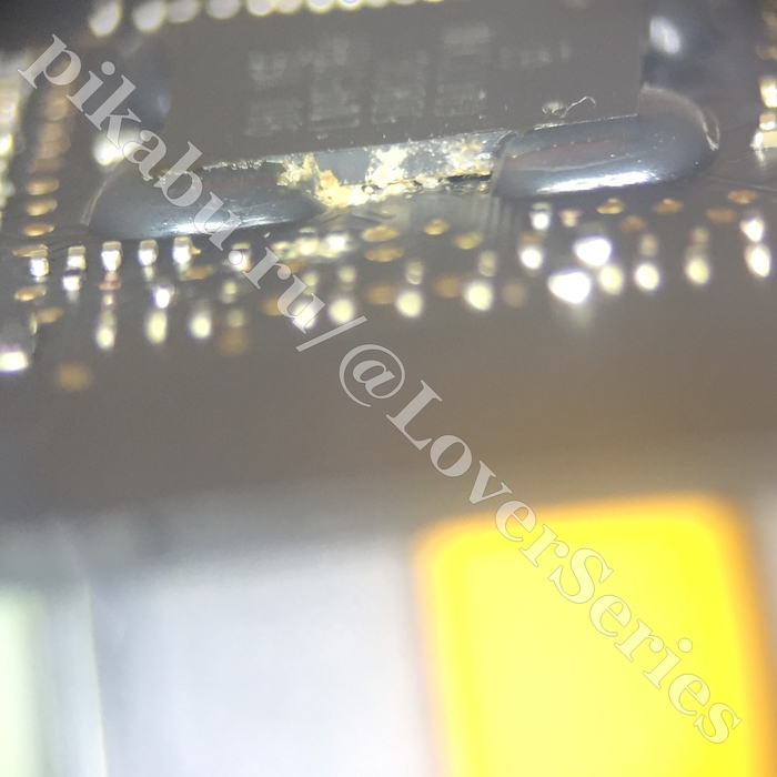 Дальше идут контроллеры питания, их тут 2. Примитивно один отвечает за питание ядра процессора, а второй за всякие зарядки, подсветки и пр, но это тоже знать не обязательно на первых порах. Главное помнить, что телефон упал, а значит где-то отвалилась пайка (либо межслойный обрыв), вариант “клиент всегда врет” в данном случае не будем рассматривать.