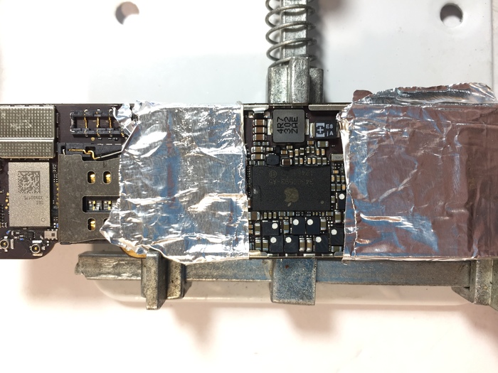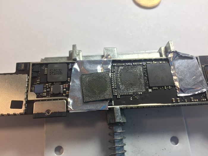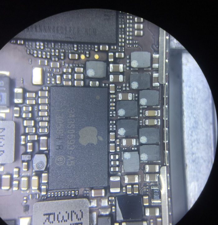имеется такой ipad с коротким замыканием в цепи питания, как потом выяснилось достаточно типовая проблема вылета именно в этом, есть даже кулибинские схемы по обходу выгоревшей части контроллера питания, без его замены. достаточно просто выпаять его, отреболлить и срезать те шары, которые учавствуют в той цепи питания. Если простыми словами, то неисправна только часть микросхемы, а большая ее часть рабочая, но т.к неисправная часть припаяна к плате, то не работает вся микросхема. Надеюсь это читают не только те, кто в теме, и также надеюсь что они поняли, что именно я имел в виду. Но мы по этому пути не пойдем, а просто поменяем контроллер питания.