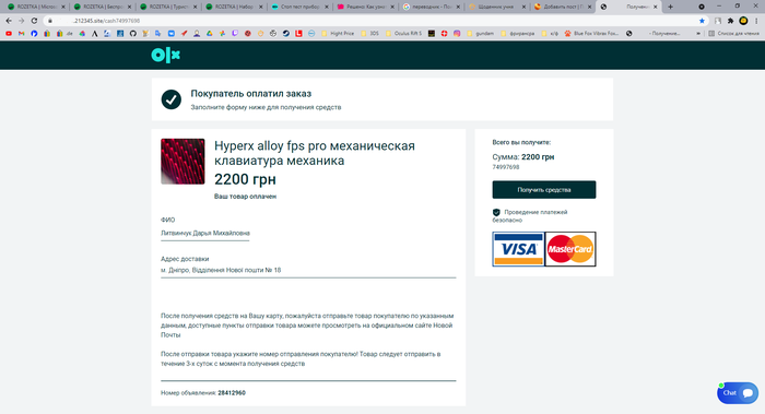 На первом и последнем фото "оно" удалило ссылку на сайт для получения деняг, я строил дурачка, но мне так и не известно, как же узнать DNS сервер обманного сайта что бы написать владельцу серверов и он заблокировал данные странички.
