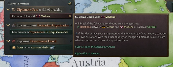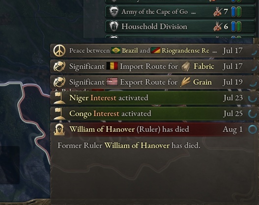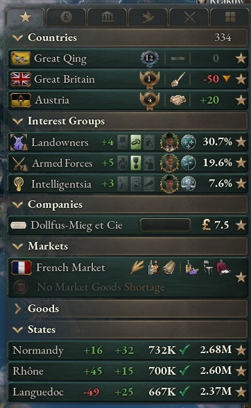 С другой стороны, вы можете заметить, что ваши пробританские промышленники совсем не рады вашему союзу с врагами британской короны и что ваш план по укреплению их же позиций через введение «Свободной конкуренции» дал сбой, поскольку промышленники не хотят работать с вами, пока вы не разорвете этот союз. Вам придётся выбирать, что важнее.