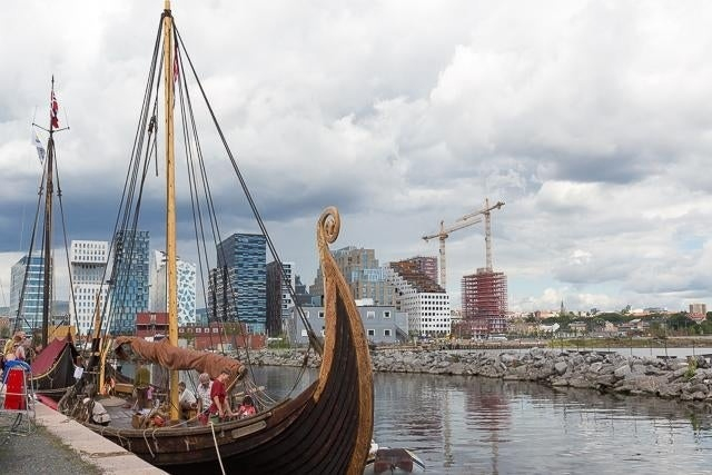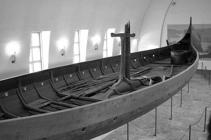 Фотографии корабля из Гокстада в музее кораблей викингов