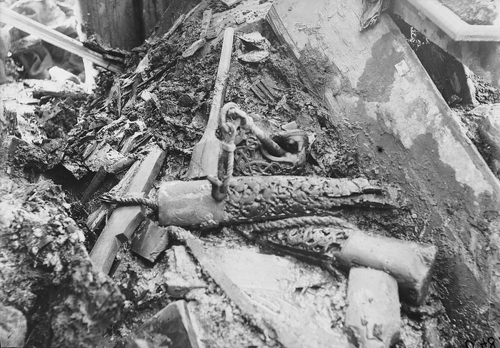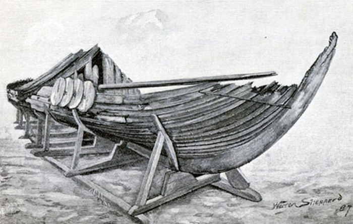 Погребение в Гокстаде, как и многие другие, ограблено давным-давно — еще в эпоху викингов. Могучий и свирепый воин, похороненный здесь, лишился не только золота и серебра, но даже верного меча, непременного атрибута любого павшего воина, пирующего в Вальхалле. Но все усилия грабители не смогли лишить его главного и великолепного оружия, которое стоило в сотни раз больше чем любой самый дорогой изукрашенный золотом меч, -- его корабля.