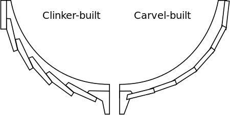 Сравнение клинкерной набора обшивки (слев) с набором стык в стык (справа)