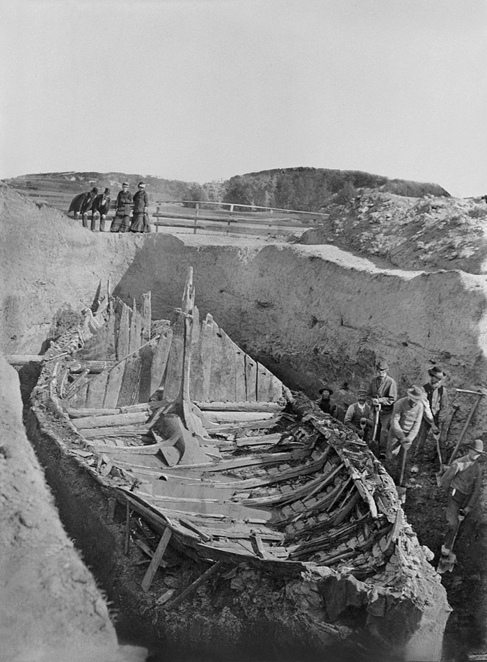 Как мы уже сказали – дата постройки корабля 890 год. Деревья, использованные при постройке погребальной камеры, рублены в 901 году. Анализ деревянных артефактов в насыпи и рядом с кораблем дают даты от 900 до 905 года.