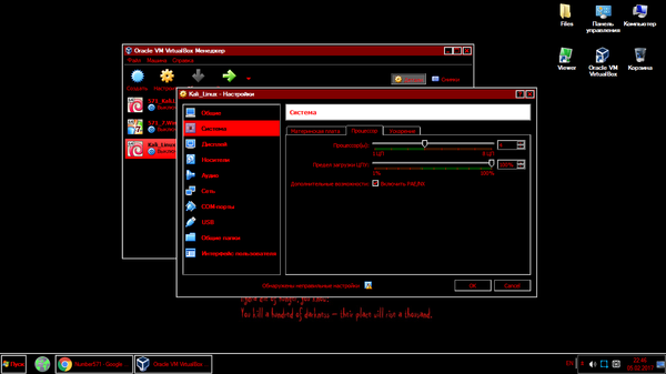 -Открываем далее в этом же пункте "Процессор" и ставите до конца зелёной линии процессоры, а так же ставите галочку напротив "Включить PAE/NX".