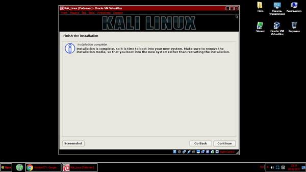 5) Всё. Теперь Kali Linux полностью установилась на Виртуальную машину.