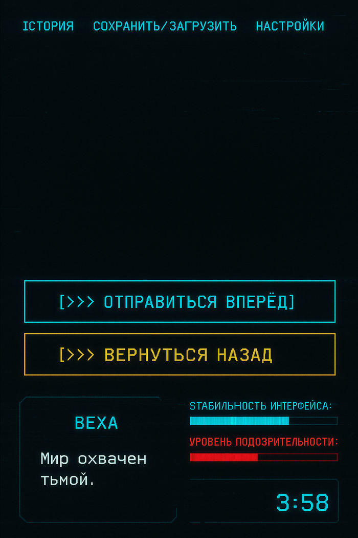 Первый выбор: Апокриф решает — доверять ей, атаковать информацией о её брате или притвориться, что не понимает, о чём речь.