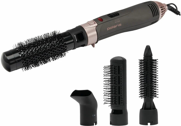 Чуть мощнее предшественницы, но главное — набор из четырёх насадок. Два брашинга (35 и 25 мм), полукруглая щётка-«ложка» для выпрямления и классический концентратор. Все поверхности покрыты Duo Ceramic: скольжение гладкое, волосы не цепляются. Управление простое: ползунок на 3 ступени нагрева, отдельная клавиша холодного воздуха.