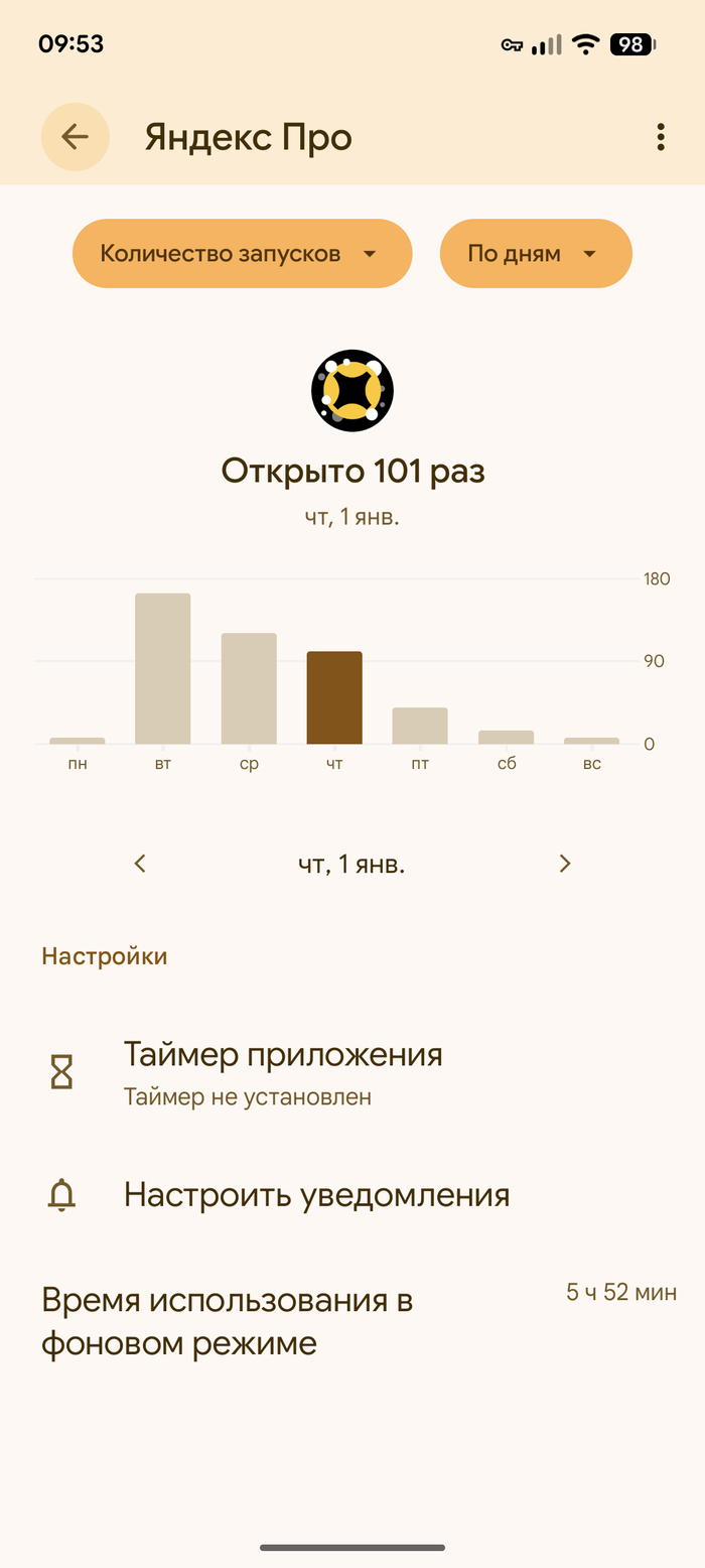 Спустя время захожу в приложение и вижу это: