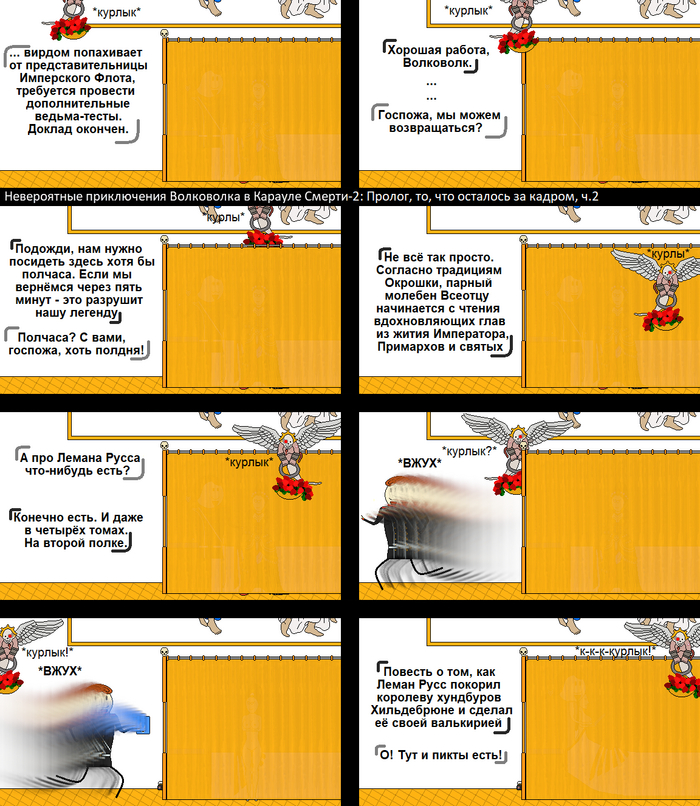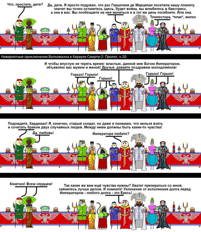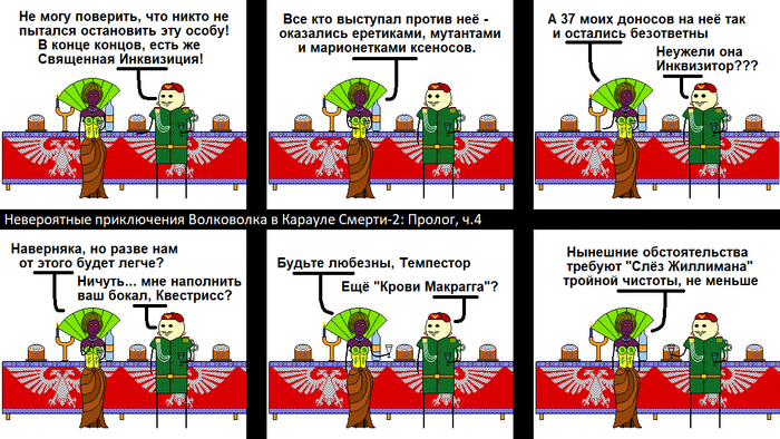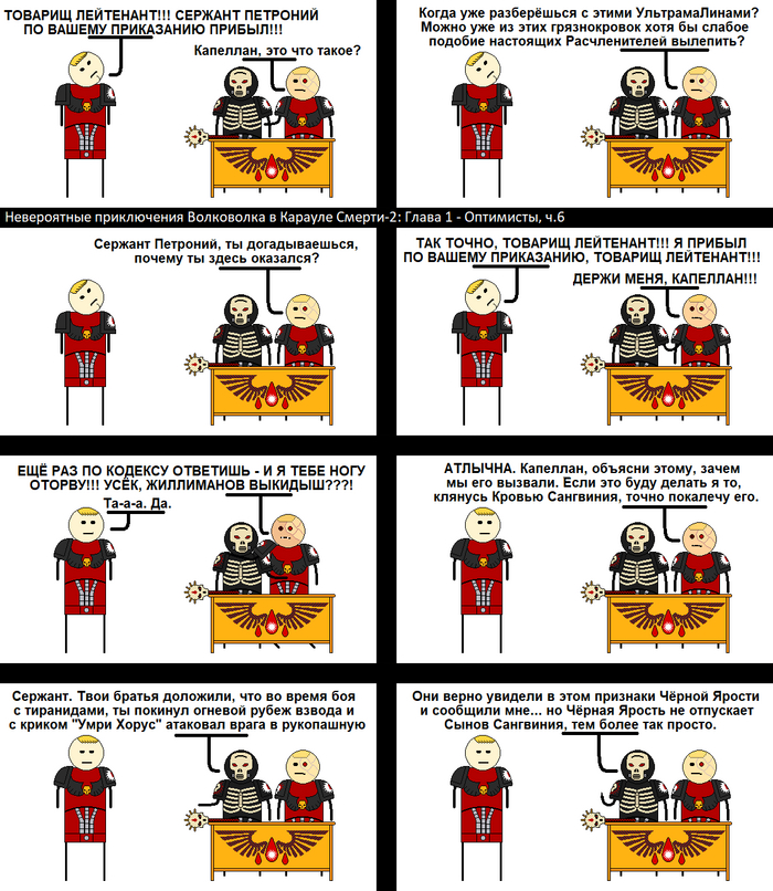 Итак, новоиспечённые космодесантники Караула Смерти добились всего, чего хотели. Их броня приняла положенный покрас и они теперь могут считать себя полноценными членами этого братства избранных воинов тысяч миров. Почти всего... в самый разгар празднования Волковолк вспоминает, что он опять кое-что забыл...