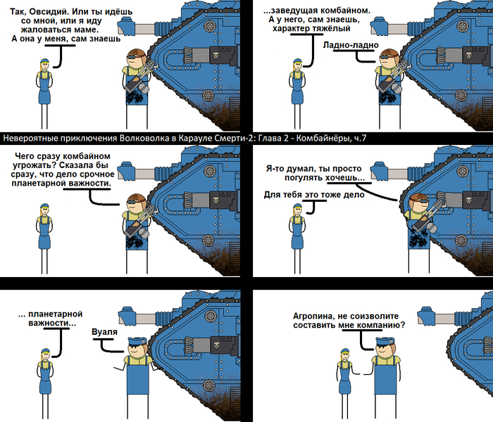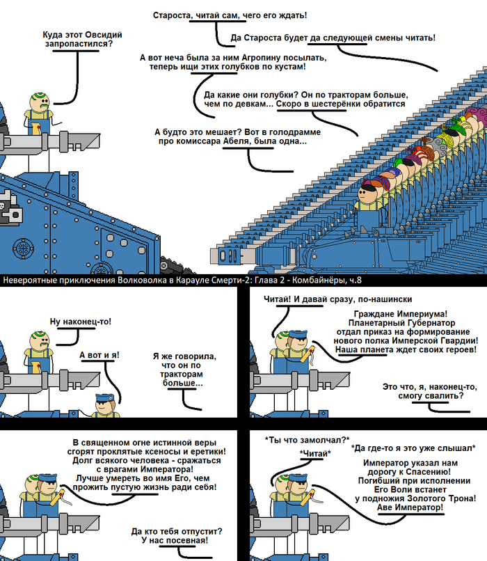 Глава 2 - Комбайнёры (конец) Подготовка к отражению вторжения тиранид идёт полным ходом. И даже в самые отдалённые уголки Окрошки полетели губернаторские приказы...