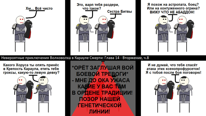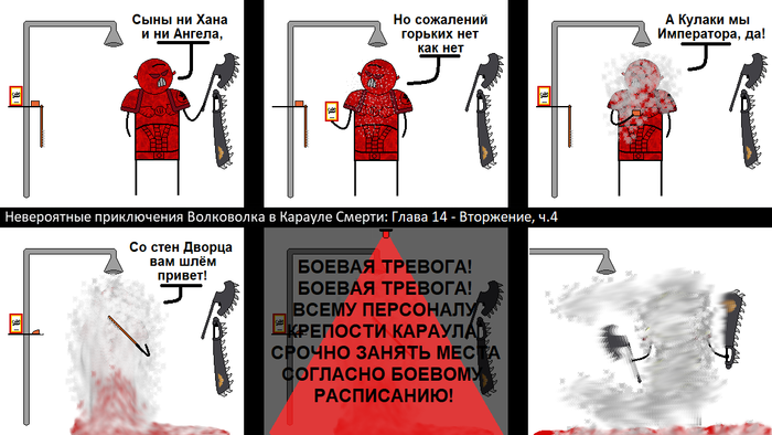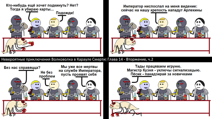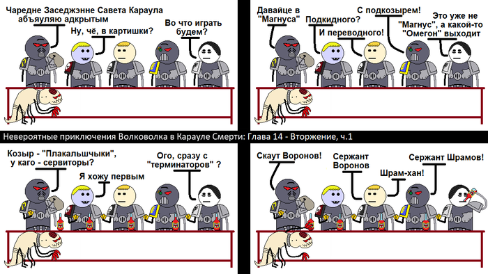 Пока Волковолк пытался получить свою заслуженную награду, десантники Караула Смерти тоже занимались своими делами. Кто-то приводил свои доспехи и оружие в порядок после недавней схватки, а Совет Караула собрался на очень важное совещание. Но даже в такие моменты враги Человечества не дремлют