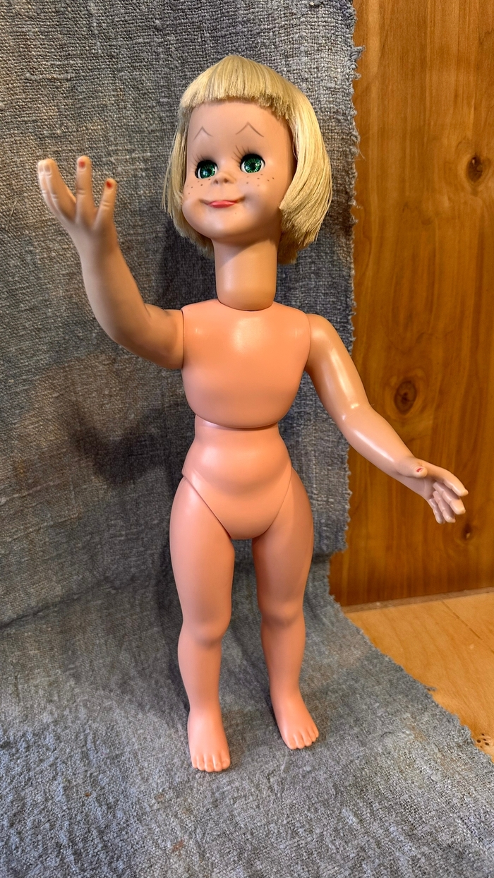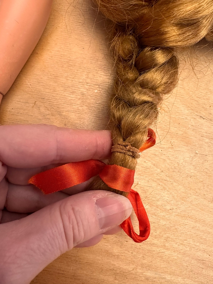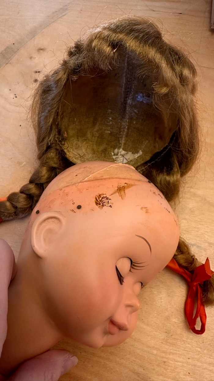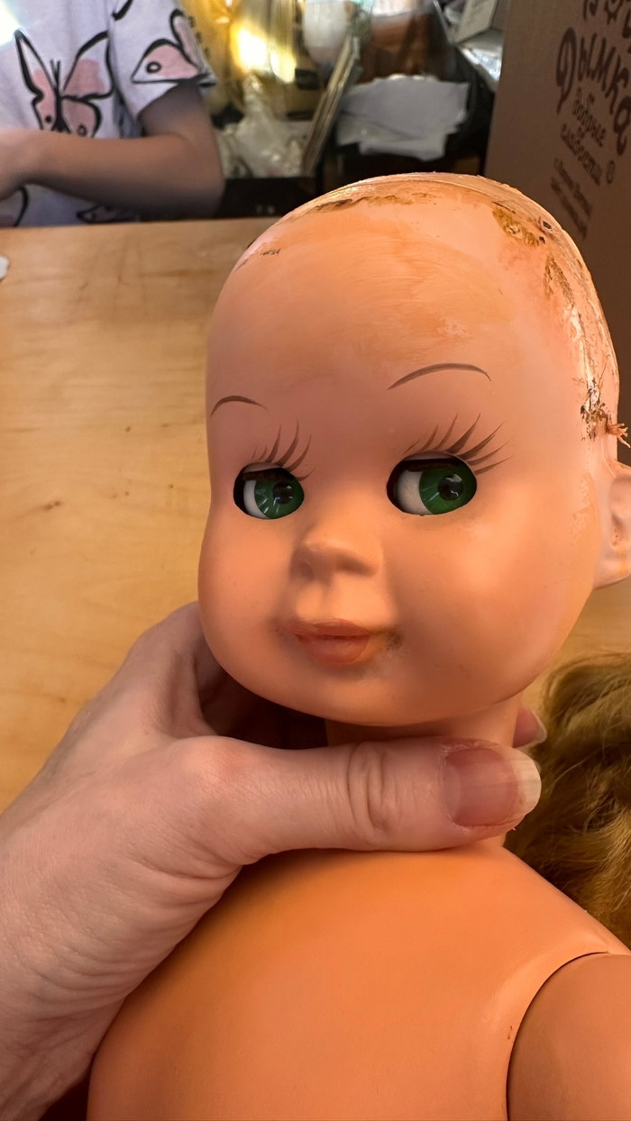 Конкретно по этой кукле я только перетянул руки за пять минут (так долго потому что трижды менял решение как будет сделать это удобнее). А чистку от непонятно откуда взявшейся краски, пыли, грязи и восстановление волос делала Нэля.