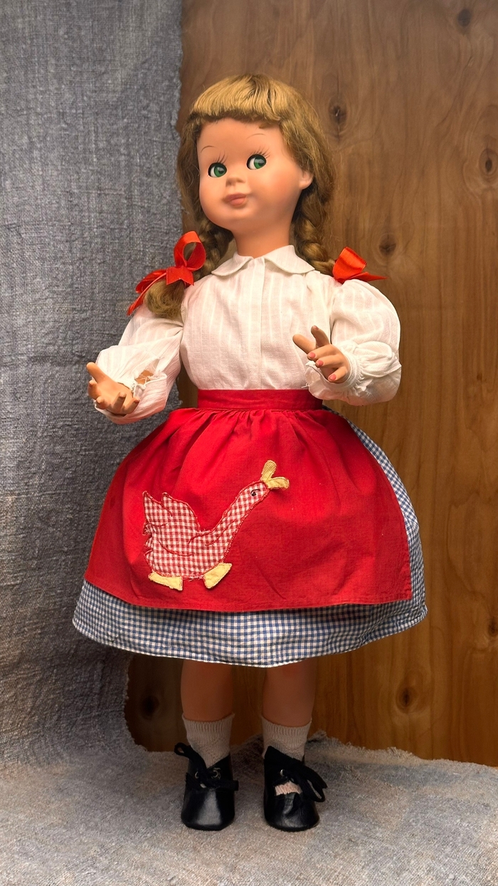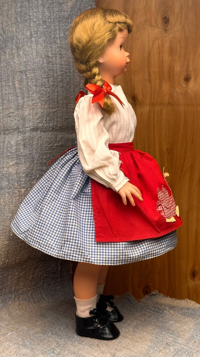 Выпускалась в разных размерах и нарядах, включая повседневные платья, пижамы и даже тематические костюмы (например, в стиле тирольского платья или вечерние наряды).
