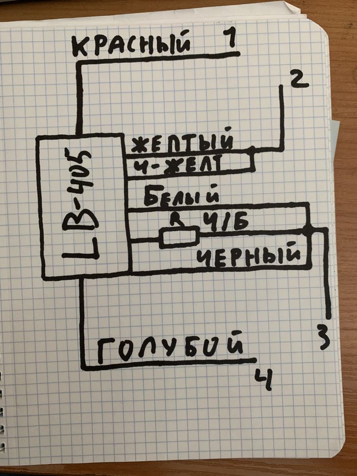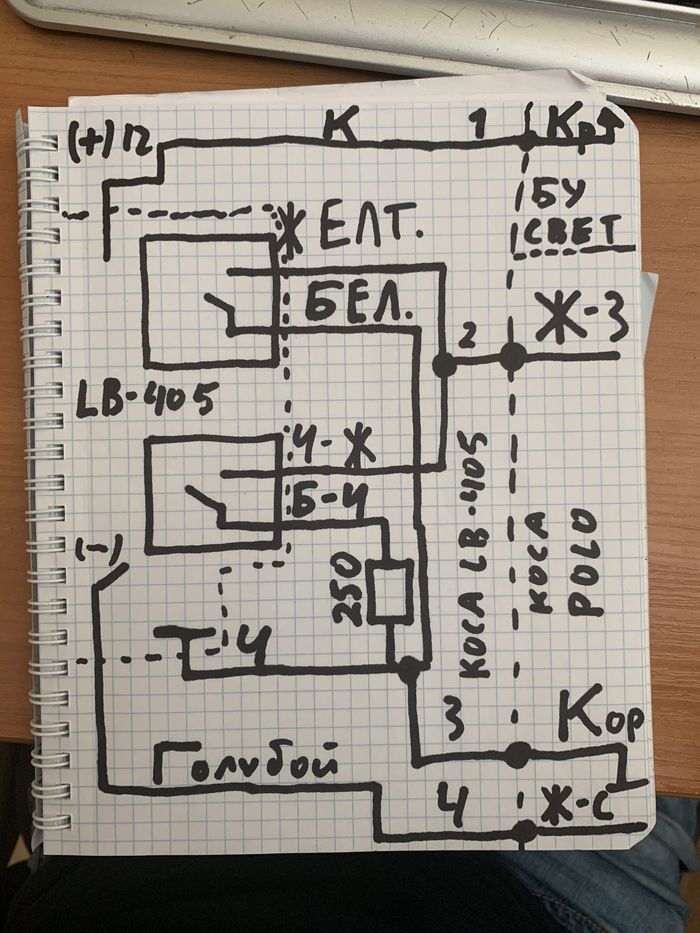 Здесь на фото я подключил минус питания нашего lb-405 к минусу питания блока управления светом, это лишнее, на тот момент я думал что белый и бело-черный провода идут на какие-то управляющие провода центрального замка.