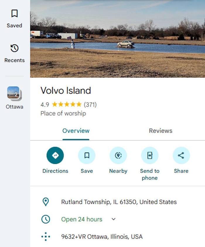 Сейчас Остров Вольво отмечен на Гугл Картах как достопримечательность с рейтингом 4,9.