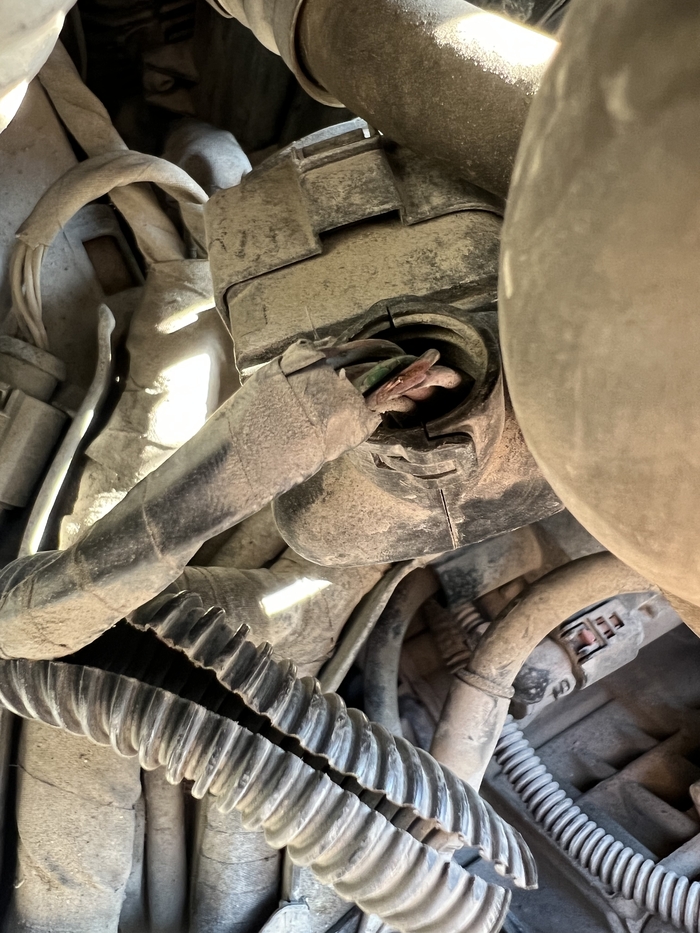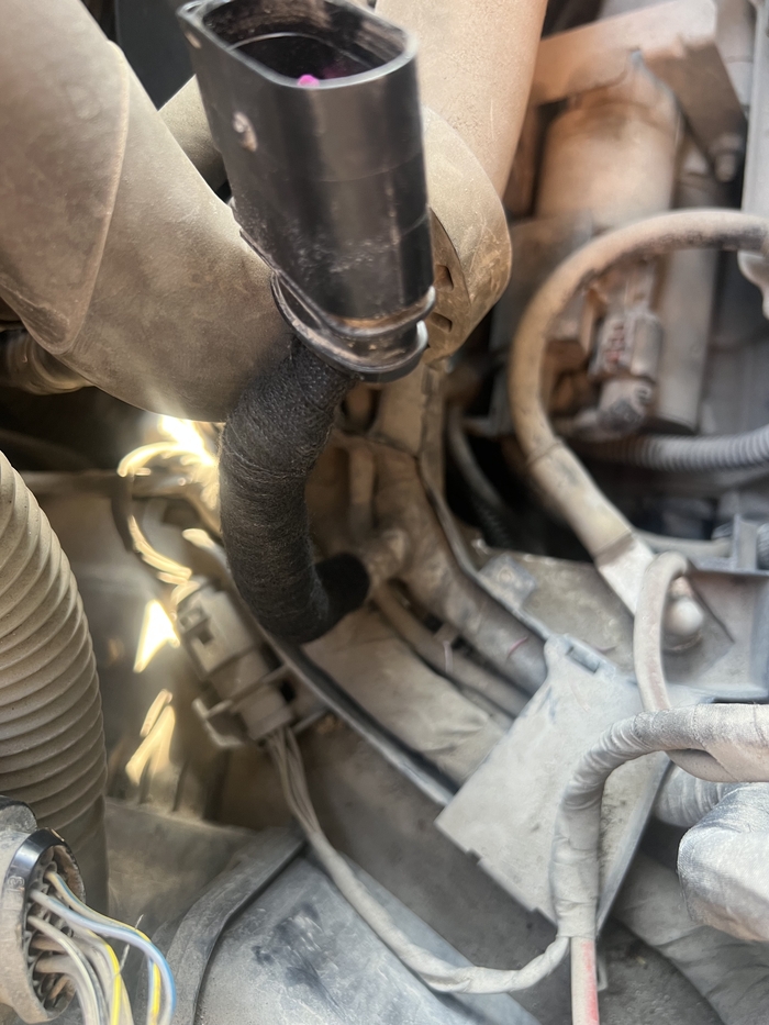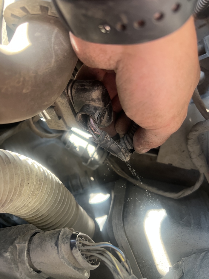 Владелец когда-то говорил, что турбина кидала масло во впуск. Я, составив логическую цепочку, пришел к тому, что датчик давления наддува тоже закидало маслом и он вышел из строя. Спустя 1 день датчик был поменян, но проблема не ушла. Я снова приехал и начал смотреть проводку под корпусом воздушного фильтра. Именно туда приходит жгут проводов от разъема датчика. И нашел интересное место.