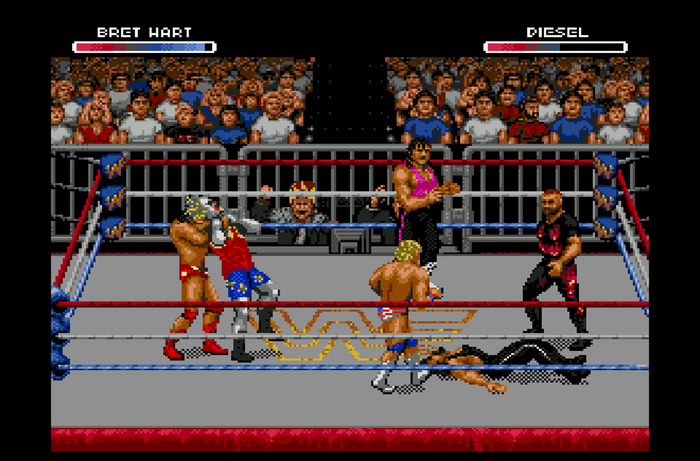 Своё рестлинг путешествие по миру потных и накачанных мужиков я начал в далёком 98г. Ночью по ТнТ под шикарные комментарии Фоменко, мы с братом восхищались и удивлённо следили за полётами и тумаками 2х метровых дядек. И уже в этом же году я впервые поиграл в рестлинг сам. Произошло это в магазине "Детский мир" на деревянном стуле перед пузатым телеком на Sega, а игра называлась WWF WrestleMania: The Arcade Game. Сказать, что я был в диком шоке, ничего не сказать.