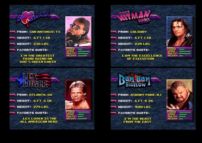 Хотя версия Super NES не содержит фирменных приемов, ее состав немного больше: десять борцов по сравнению с восемью в версии для Genesis ...