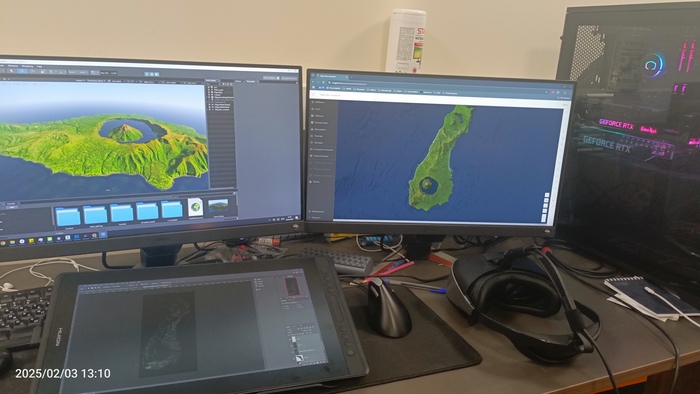Коротко про работу: я делаю ландшафты. в 3D и VR на движке Unigine. Полный цикл, от отдельных 3D моделей с текстурированным, до интеграции их в ландшафты, создание масок текстур и настройкой сцен. Минимальная проработанная площадь - 2х2км. с максимально видимой площадью до 30х30км. И да, какого либо графического, художественного, геологического образования нет.