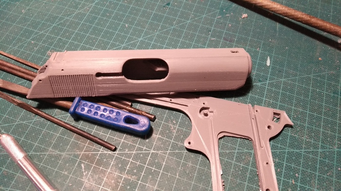 Момент, возникающий в ударно-спусковом механизме при вращении курка, ощутимо влияет на точность выстрела. Поэтому в новом оружии использован спусковой механизм, в котором ударник движется поступательно. Это несколько усложнило конструкцию, что для спортивного пистолета не считается критичным.